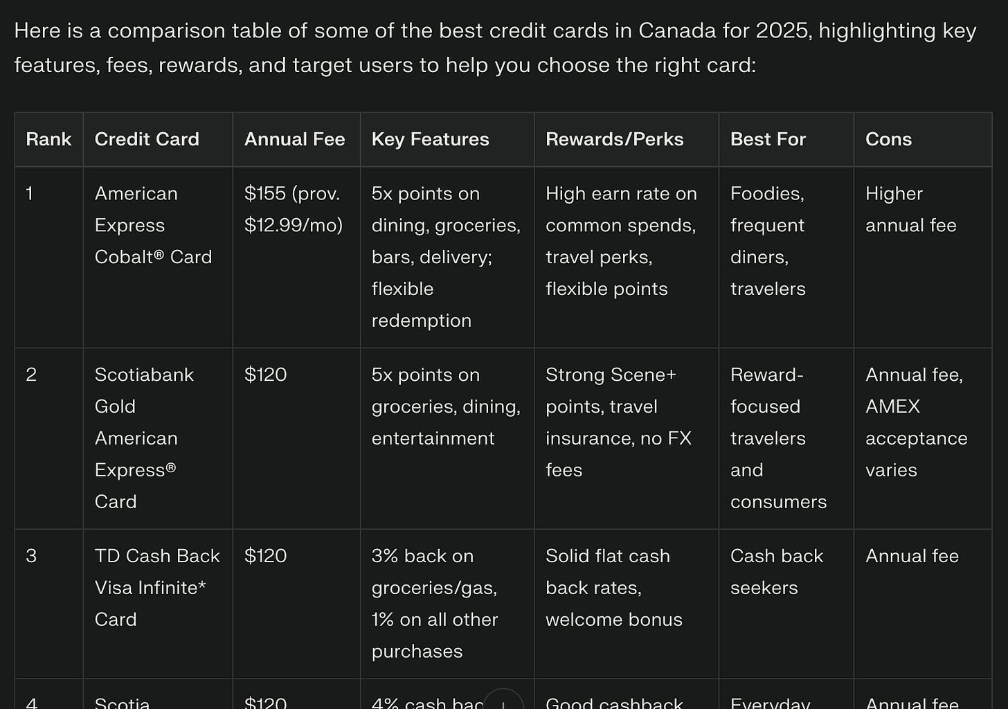 Side note: There is no obligation for AI to be compliant with with regulation. In the example above you can see the credit card fee displayed without the APR, contrary to financial regulation.